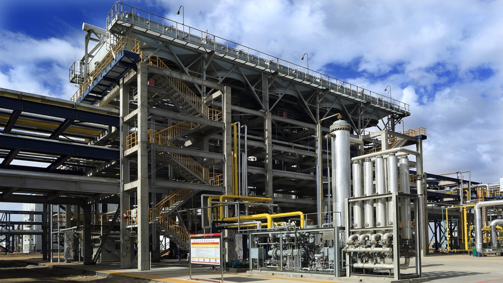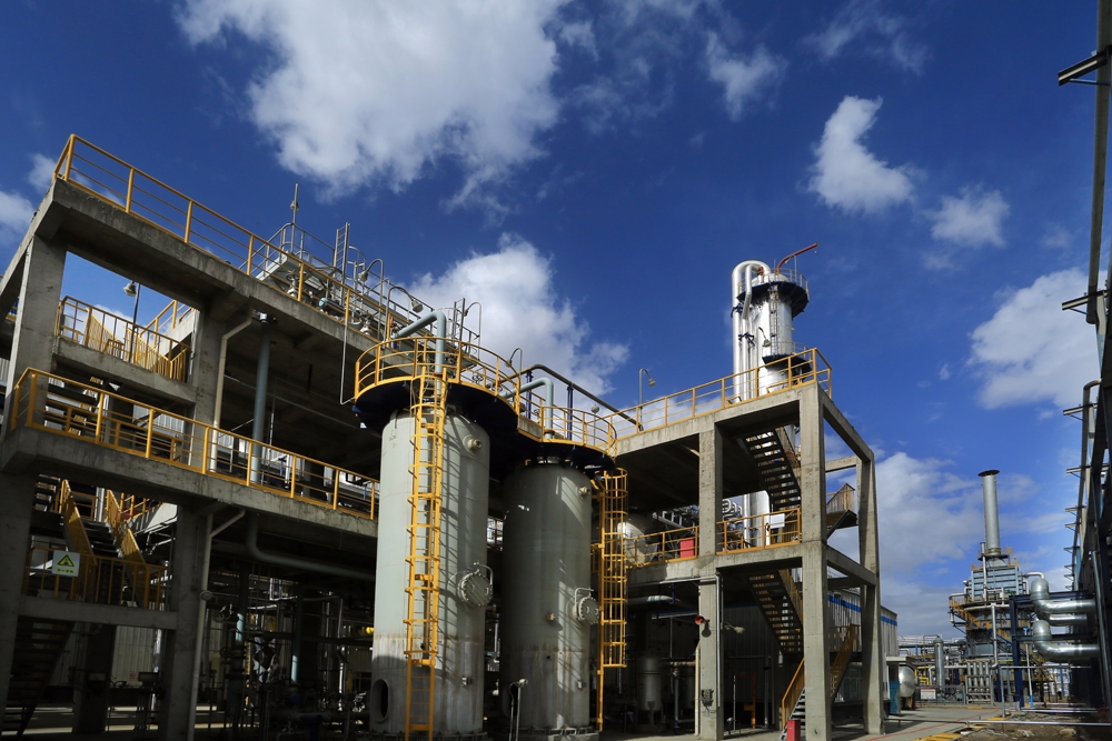 甲醇裝置是利用焦爐氣制氫及原料煤氣化制合成氣加工生產100 萬噸/年MTO級甲醇,用于生產烯烴。青海鹽湖金屬鎂一體化項目甲醇裝置總投資約36億元,華陸科技承擔甲醇裝置二標段的總承包,包括低溫甲醇洗、甲醇合成、合成氣壓縮、冷凍站、合成機柜間、硫回收、循環水、凈化變電所、氫回收、空壓站、硫磺包裝庫和甲醇總變電所等13個單元。圖為青海鹽湖甲醇項目全景