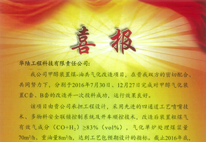 延長靖邊甲醇裝置煤-油共氣化改造項目喜報