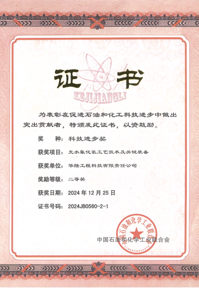 近日,“2024中國石油和化學工業聯合會科技獎勵大會”在京召開。由中國化學華陸公司與合作單位共同開發的“無水氟化氫工藝技術及關鍵裝備”榮獲中國石油和化學工業聯合會科學技術進步獎二等獎。